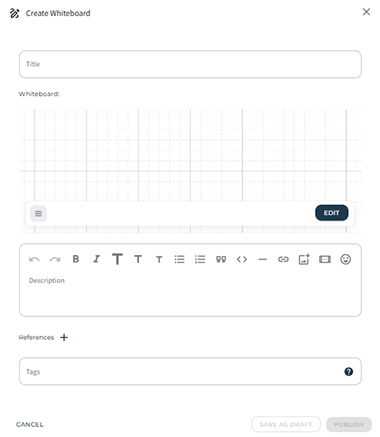 Met deze tool kunnen leden reageren met visuele bijdragen. Leads kunnen een template instellen, zoals een vision board of stakeholdermap, en leden vragen om hun eigen whiteboardbijdragen in te dienen.